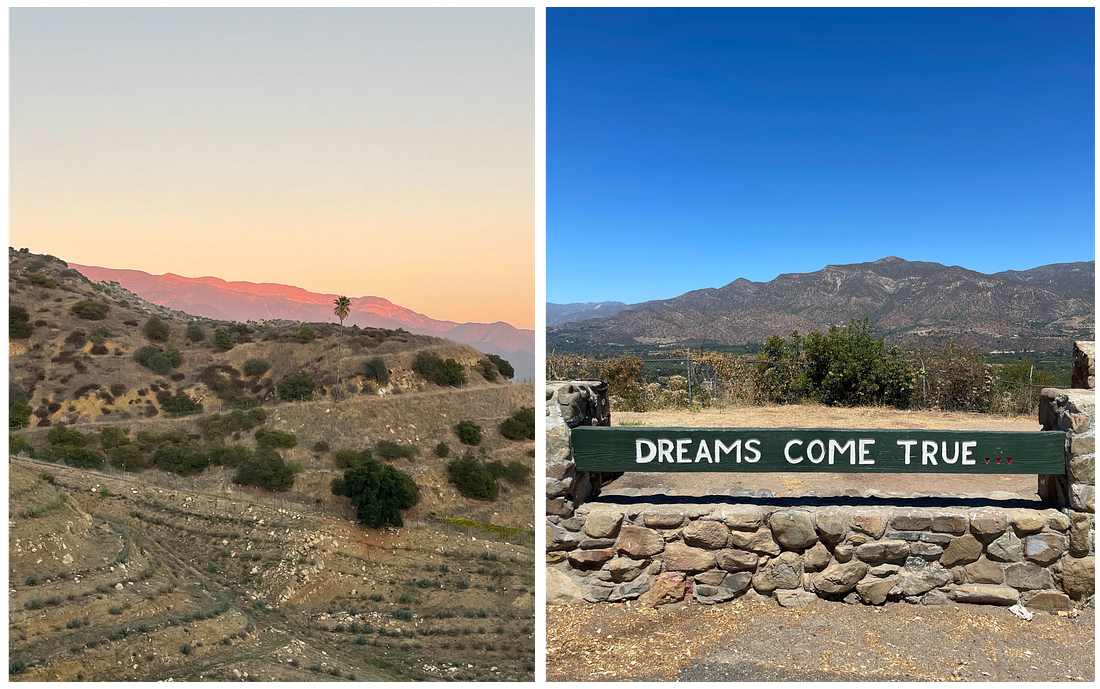 I originally planned to share a travel guide to Ojai, but as soon as I began typing, the issues with doing so began to surface. Moving to a small town that many people are drawn to isn’t as simple as it may seem. Ruminations on this conflict follow. As well as more straightforward thoughts about the Japanese chef’s knife I picked up at an NYC kitchenware institution, where they persuaded me to get a different knife than I planned. And if you enjoy reading this post, please pass it along. My friend James hustled into the avocado orchard where our group gathered for Monday Hill Sprints, an early-morning exercise tradition he started during Covid. “Sorry I’m late, I was helping catch a pig,” James explained. “How Ojai is that?” Hill Sprints are masochistic, but they get the endorphins flowing. You sprint up a rocky dirt road 10 times, do a bunch of push ups and squats between each sprint, and top it all off with a plank-as-long-as-you-can flagellation. On this morning it was seven hardy men and me. Everyone started out chatting about the weekend and their dogs’ play habits, but by the seventh sprint, lungs were heaving and everyone was corralling any remaining strength to get to the reward—a shot of perfectly brewed coffee that James brings in a jar and pours out in tangerine-colored enamel espresso cups. Tad and I first did Hill Sprints before we bought our house, and it was one of the pivotal experiences that signaled to me that Ojai was a place with strong community, a place where good health and a beautiful environment co-existed. This belief was reinforced at the Ojai Valley Athletic Club, the local gym that feels like an upgraded YMCA from the 1980s. They have classes for everything from aqua zumba to pilates to qi gong. I’ve never been an Equinox or Barry’s type, so I felt right at home. And I fell in love with the tall palms, round-ball parking lot lamps, and 1970s-style arches that make up the facade of the Westridge Market, the local grocery store. Chains are not permitted in Ojai, so it’s filled with independent businesses. People in town also put farmstands by the sidewalks for their fruit trees and garden crops. Most contain boxes for paying; one has a snake fashioned out of a pipe—you feed your cash into the serpent’s gaping mouth. For a town of 8,000, Ojai is long on community activities and volunteering. A group celebrates Pie Day (March 14) with a 3.14-mile walk, followed by pie-eating. You can volunteer for the Ojai Valley Land Conservancy, reinforcing hiking trails and clearing brush, or visit the Turtle Conservancy, home to more than 500 turtles and tortoises from around the world. Or you can take part in the Fourth of July Parade—see here—alongside dancing horses, local Hare Krishnas, a herd of goats, monster Jeeps, and a woman named Earth Friend Jen, who rollerskates on one leg through town. What Ojai is best known for is a simple geological marvel: every day at sunset, when the sun casts its parting glow over the banded peaks of the Topa Topa mountains, the mountain face turns, ever so briefly, a rosy hue. It’s called the Pink Moment. Ojai has long been home to creatives, seekers, and spiritual refugees. The philosopher Jiddu Krishnamurti settled here in the 1920s. In the 19th century, visitors came for the Matillija hot springs as a health retreat, and eventually for the golf course built by glass magnate Edward D. Libbey (who helped fund the development of the arcade, post office, and public tennis courts, as well as the Arbolada neighborhood). Ceramicists Otto and Vivika Heino and Beatrice Wood, a founder of the Dada movement, were residents. Located just over an hour north of Los Angeles, Ojai has naturally attracted Hollywood celebrities, too, but they tend to be the type who come to escape the spotlight. They usually have homes in the hills and keep to themselves. I’m a bit of all three: creative, seeker, and spiritual refugee; Tad is more singularly a creative. I’m also aware that we belong to a sudden rush of newcomers and tourists, largely triggered by Covid, that is not necessarily welcomed here by all. Many Ojaians value its Edenic qualities, its down-to-earth nature. Kids riding around on bikes, unmonitored. Menus without a Caesar or a crudo. Affordable groceries. A creative culture of artists, musicians, and healers.