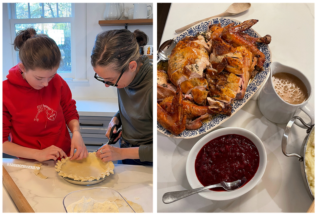 In defense of perfectionism (even while renovating, ha)And a zesty salad dressing to cut through the post-turkey daze.I hope you had a joyful Thanksgiving and are making turkey tetrazzini today! Here are a few pics from our feast. Yesterday, we had a dynamic chat about perfectionism and renovation—thanks to all who shared your thought-provoking opinions. I saved my thoughts for today, so read on! You can also watch a video that captures our construction process and elusive timeline. Can we commiserate about this? Lastly, I’m sharing the first recipe I developed in Ojai, and it’s a great one for reawakening your palate from its Thanksgiving coma. P.S. Annual subscriptions are currently 20% off! A great under-$50 gift, or a no-excuse-needed treat to yourself. And, as always, if you enjoy reading this post, please share it! I’m a perfectionist. If you invite me to your house, I will notice the cracked paint, the dust on a shelf, the dinged cabinet. I never knew any other way. My childhood best friend used to joke, “You do cry over spilled milk at the Hesser’s house.” My mom ran a tight ship. And a very clean one. Like many habits learned young, this reflex has been difficult to shed. I’ve spent my life being told that perfectionism is pointless, that perfectionists are annoying to work with, that there is no perfect, that perfect is the enemy of the good. And so? Perfectionists know the goal is foredoomed. We’re here for the journey, duh! Sorry if your journey is just…sloppier. Right back atcha! When you renovate, the perfectionist nervous system begins to vibrate. Rooms get fractured and pulled into pieces. Perfectionists want all the Lego pieces back in their place! But some pieces will get lost, others chipped and discolored, others replaced entirely. It’s part of the creative process. It’s also part of the human process, as any group endeavor involves humans with varying skills and character. Renovation, which is often instigated by perfectionists, tends to pain them during the process and please them in the long run. I’m now in late-stage perfectionism, where I’ve lived enough to understand how projects play out. I know what I can control and what I can’t. More importantly, I’ve come to see how seeming flaws and their subsequent solutions can often make for better results. Humanity wins. Humor helps, too. With our Ojai property, there were a million things to get “right.” I knew that if I wanted this to be a great house, we needed to invest our money in working with great people. We might have been able to get the ADU and back third of our property completed (both have been shelved for the foreseeable future) if we’d worked with different teams, but I wanted a home with beautiful details, not a home with a bunch of less polished details. While these teams did the quality of work they’re known for, I channeled my perfectionist energies into what I’m best at: the layout, organization, and finishing details of areas like the kitchen and pantry. But I got so fixated on the kitchen cabinet storage that I almost forgot a key countertop feature that I’d been pining for (to be shared soon, stay with me).