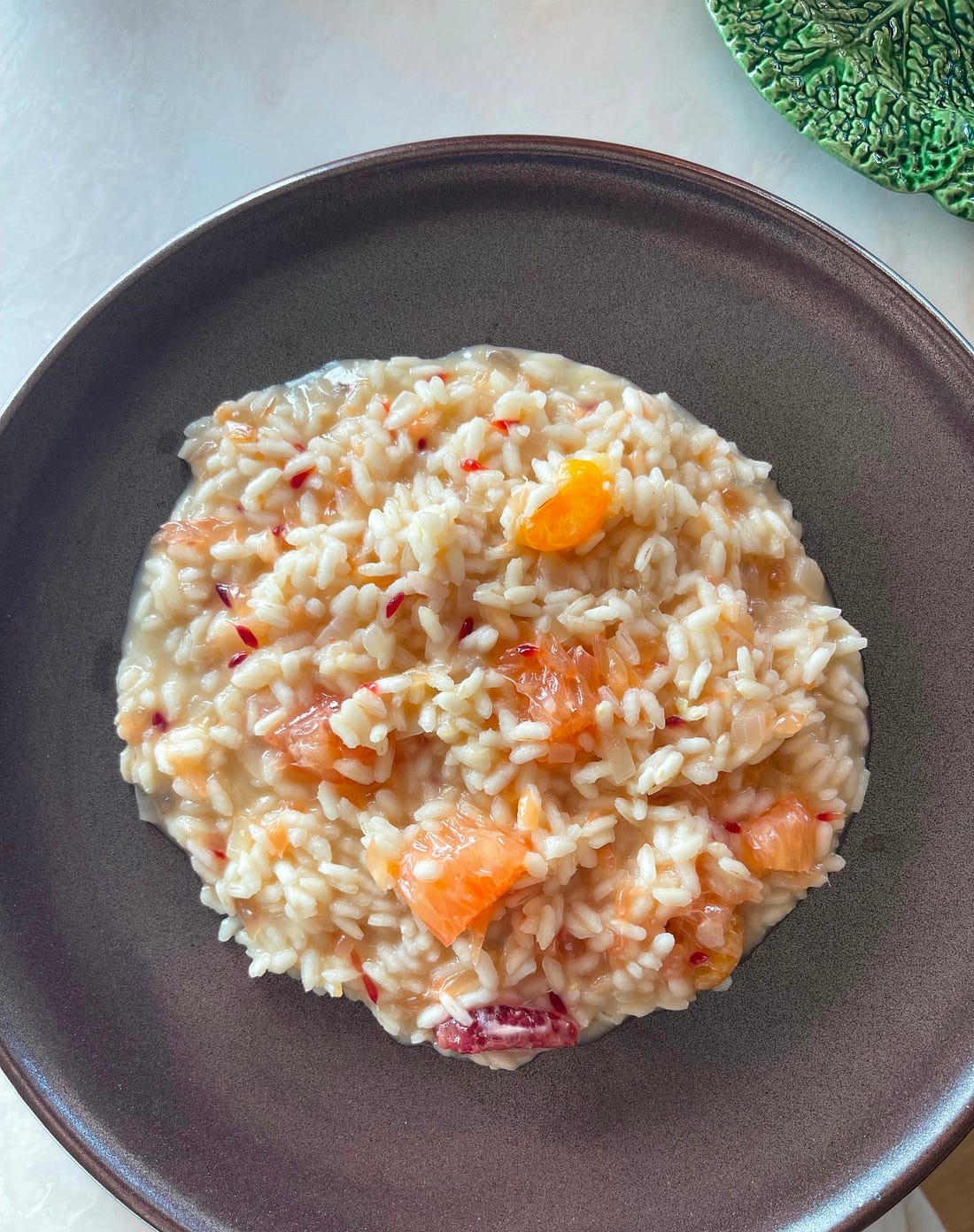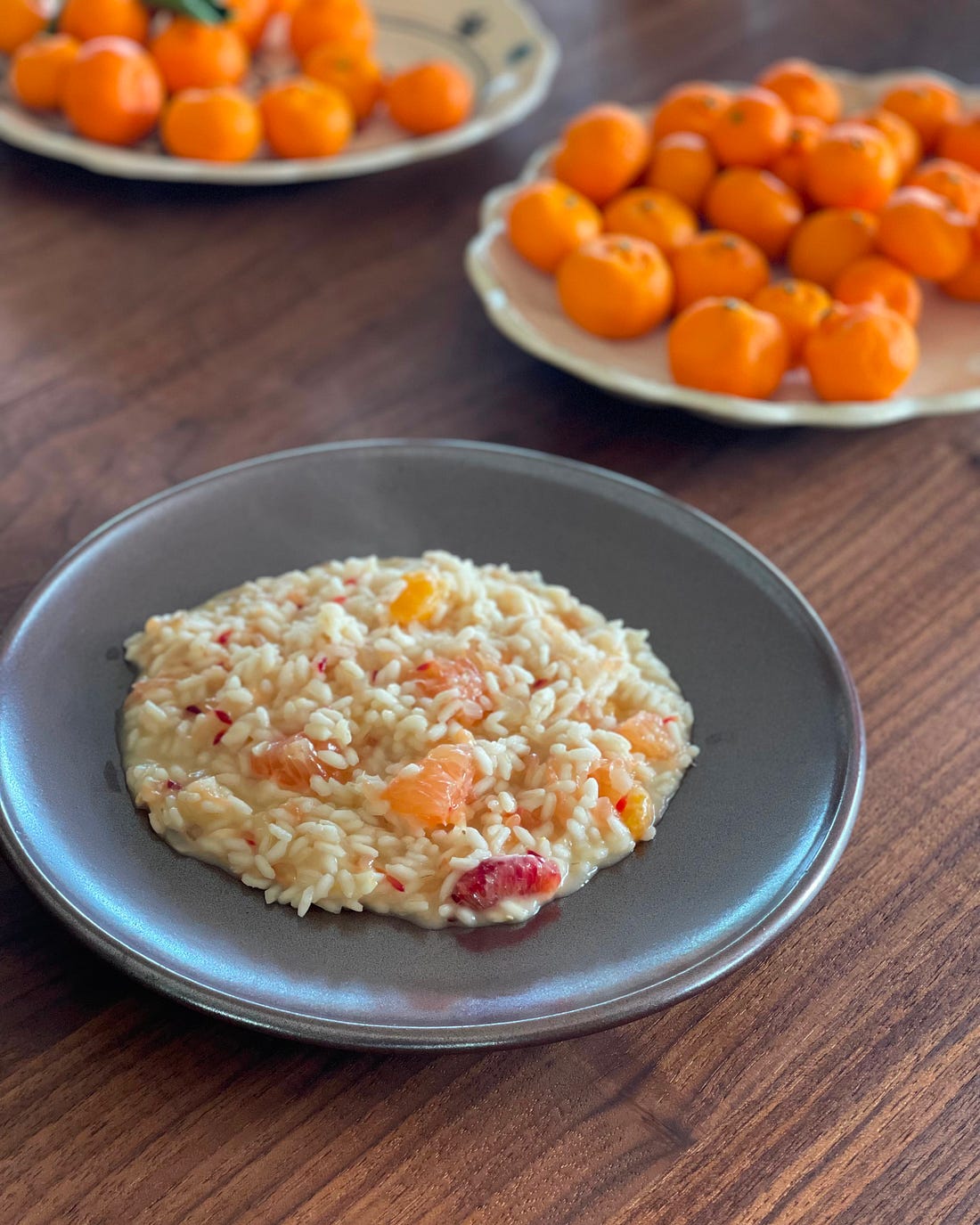 We moved into our house in December. It will be March in a few days. Our interior punch list continues and our landscape crew is still doing construction and planting. I have lots to show-and-tell you next week. In the meantime, I hope you’ll enjoy this week’s free post—please share it if you enjoy reading! Following up from my dinnerware deep dive, get a load of our new plates that arrived yesterday from Kati von Lehman. Aren’t they beauties? Kati makes brown stoneware feel elegant with precise glazing and a dense clay that she works to a thickness that teeters between hefty and fine. (We decided to get 8 plates, rather than 12—how do you feel about set numbers? Let me know in the comments.) This week, I wanted to get back in the kitchen—because our new kitchen is super fun to cook in! I made a Citrus Risotto recipe from Zuni Cafe in San Francisco that was featured in Simply Genius by Kristen Miglore. Judy Rodgers, Zuni’s chef and owner, insisted that all the fuss about having to constantly stir risotto was bunk. She said you can stir it here and there, while doing other kitchen tasks, and you can use any temperature broth you want. No need to keep a pot of carefully simmering stock next to your risotto pot. Risotto chefs: we are now free of all those stodgy old rules! Whoopee! While we’re at it, I’m going to add my own debunking: I learned from a born-in-Italy chef that you don’t need a deep pot for cooking risotto; a shallow braising or frying pan gives you more control over the texture. As you’ll see in my video, I happily flouted all the rules and swerved off course with the risotto (doubled the citrus, and the onion, too)—and it turned out great. I do say so myself. Hope you’ll try it with whatever mix of citrus you have on-hand. Doesn’t this winter need a little brightness? One-Pot Citrus RisottoAdapted from Judy Rodgers Serves 4 to 6 Ingredients 2 tablespoons unsalted butter Instructions 1. Sauté the onion: In a 4-quart (3.8L) saucepan or another medium pot over medium-low heat, melt the butter. Add the onion and a few pinches of salt and cook, stirring regularly with a wooden spoon, until the onion is tender and translucent, about 6 minutes. 2. Simmer the rice: Add the rice and stir until the grains are warm and glossy. Pour in about 2 cups (475ml) of the stock, adjusting the heat to let it gently simmer, then stir occasionally until it has been mostly absorbed. Add another cup (240ml) or so of stock and repeat. The risotto should be starting to look like a porridge. Taste and adjust the seasoning—the rice will still be hard and a little raw tasting. Add another ½ cup (120ml) or so of stock and stir as needed until just absorbed. Taste and adjust the seasoning again. 3. Stir in the citrus: Break the citrus sections into irregular chunks as you add them to the risotto. Add the grapefruit juice—if your grapefruit was very juicy, you may not need much of the remaining stock. 4. Beat in the mascarpone and eat: Taste again: If the rice is still quite firm, add more stock, a tablespoon at a time, and cook until the rice is still just a little firm in the center (al dente). Turn off the heat and aggressively stir in the mascarpone until the risotto is creamy and the citrus is broken down into pretty flecks. Serve immediately. Wondering what knife I used to trim the citrus (and my fingers)? It’s Material Kitchen’s 6” Serrated Knife. I have an obsession with tomato knives and have been eyeing this one for months! And for those seeking more spring-is-so-close recipe ideas, here are some greats from the Homeward archives: